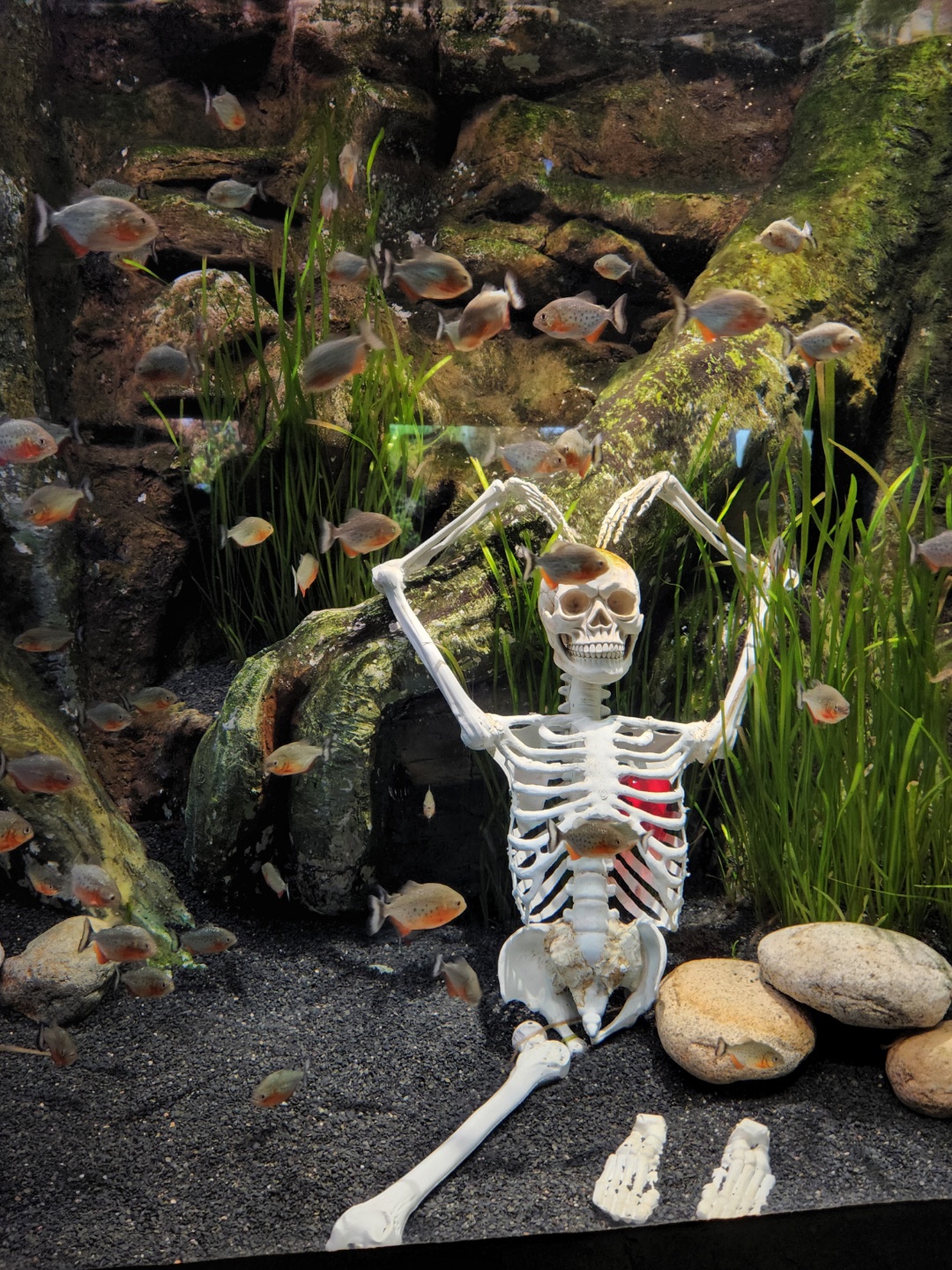 피라냐 수조에서 냅다 하트하는 해골빠가지...