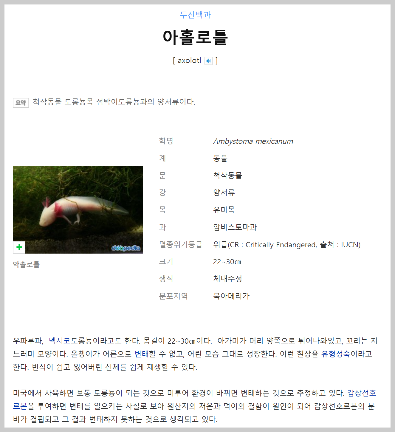 <아홀로틀>이라고 나온다 정식명칭인가봄