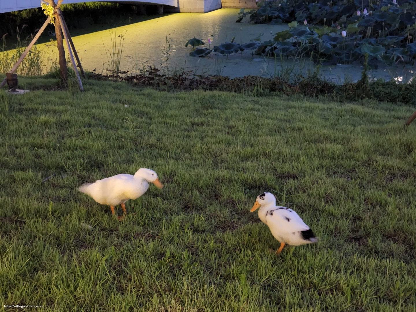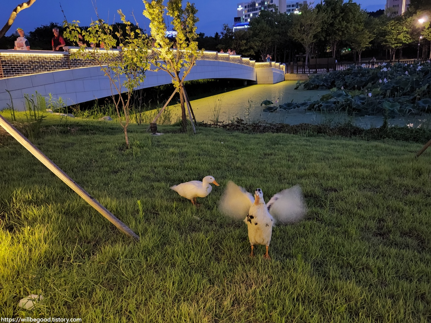 다리 초입에서 만난 오리 두 마리
