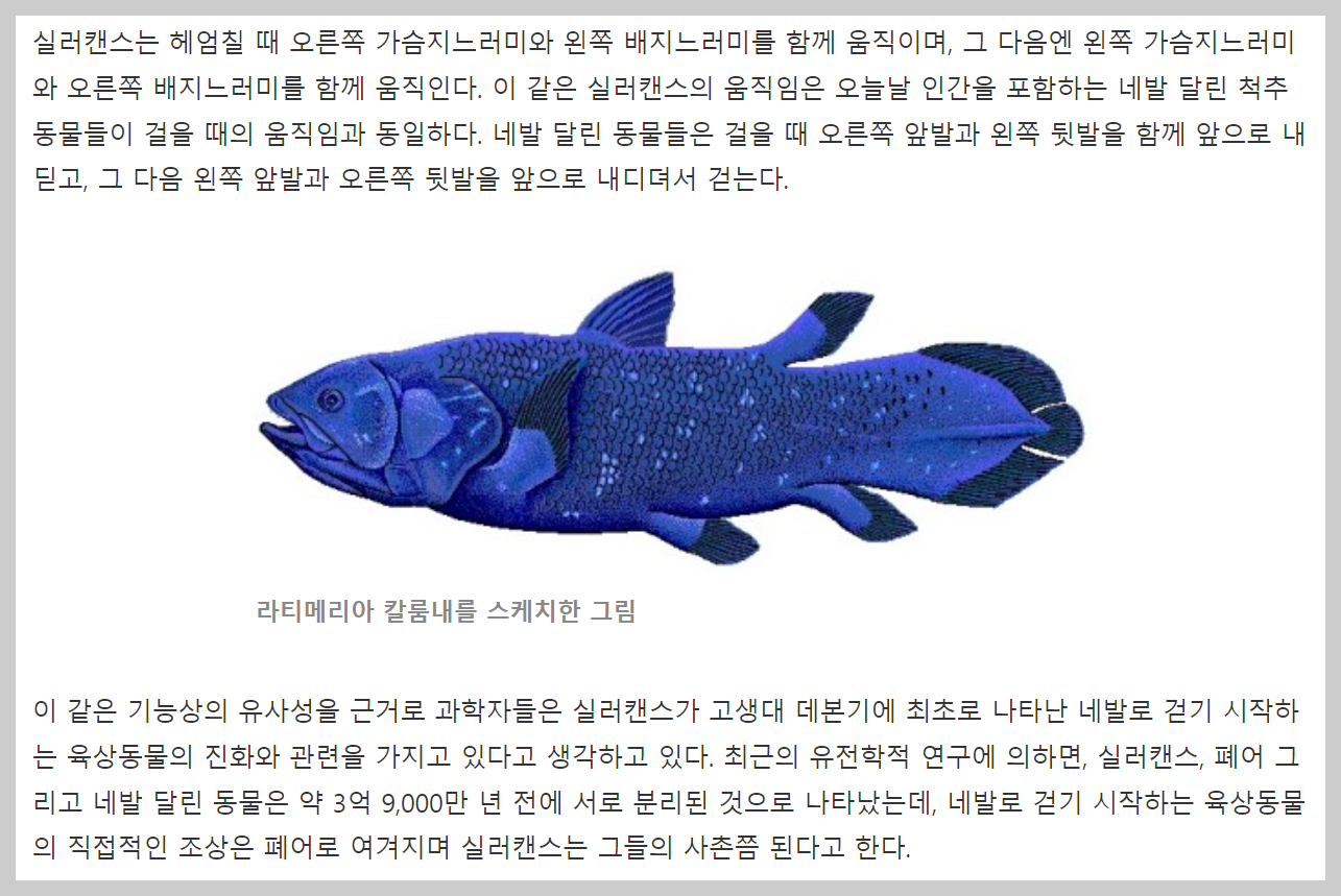 이것도 궁금해가지고 네이버 백과에 <실러캔스>를 검색해 읽어봤다