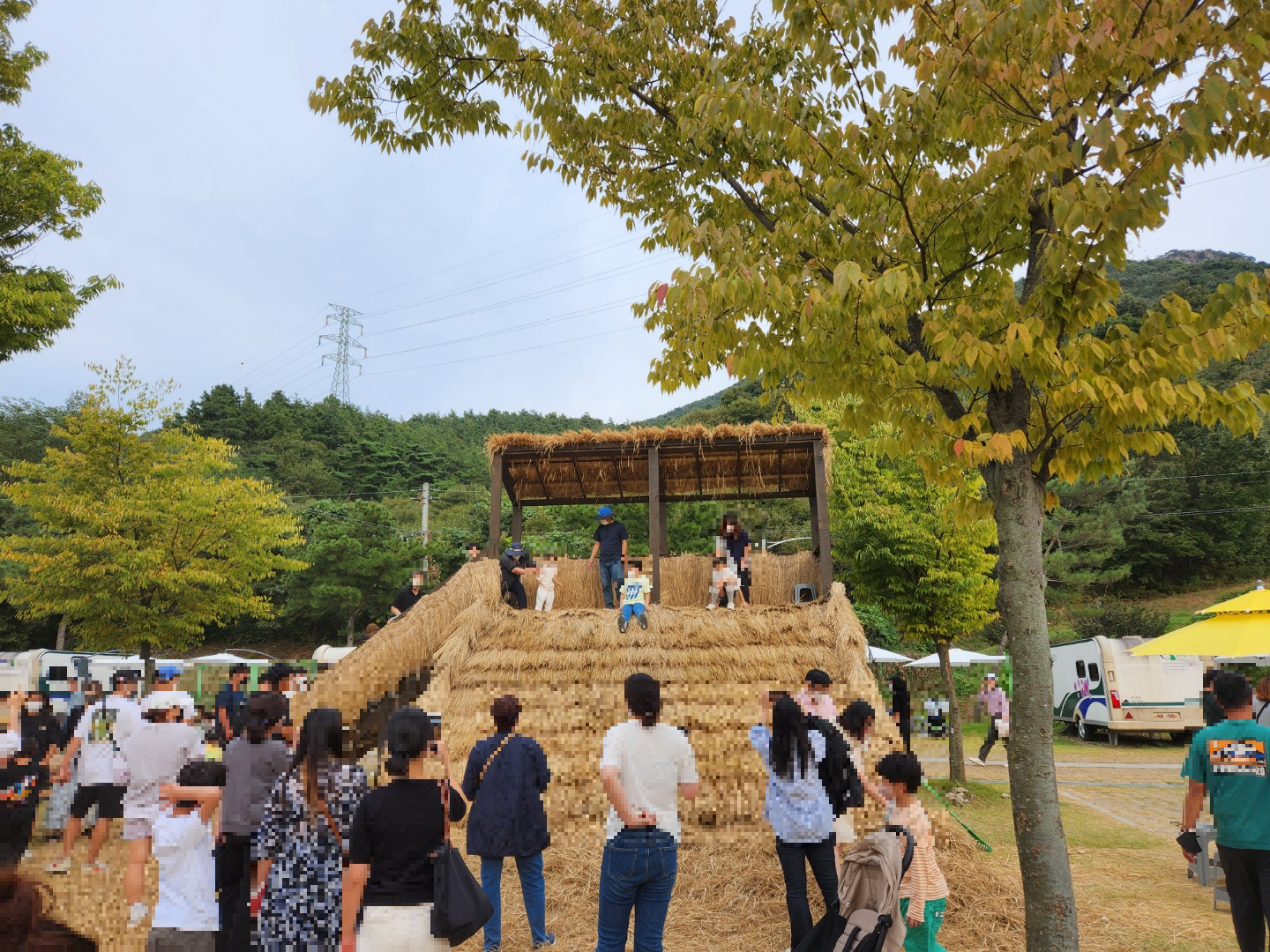 체험은 굼벵이 만지기 체험이랑 곡식 터는 체험 했는데... 그것도 이름이 기억 안 남.. 엄마가 너도 함 해보라길래 애들 사이에 끼어서 했다;ㅋ