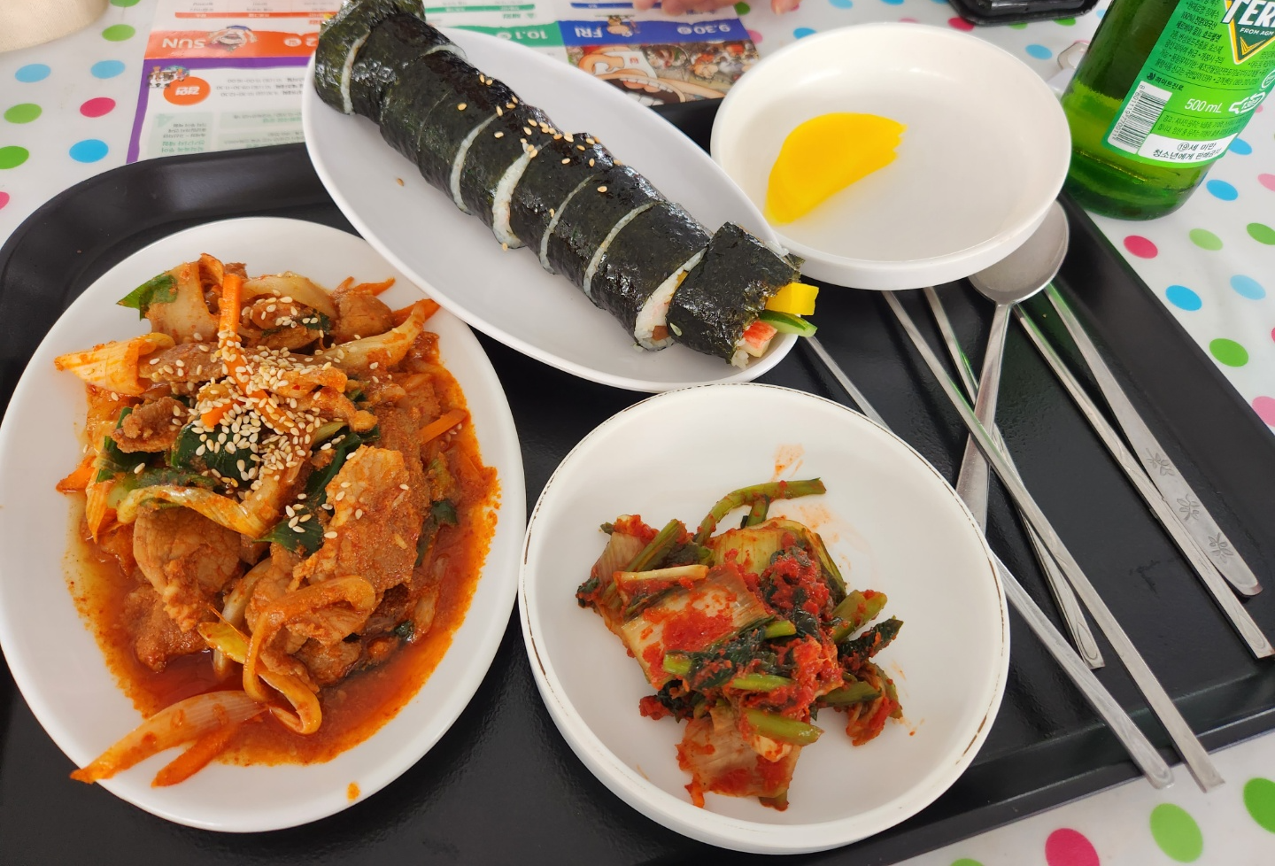 고민고민하다가 일차로 시킨 제육과 김밥