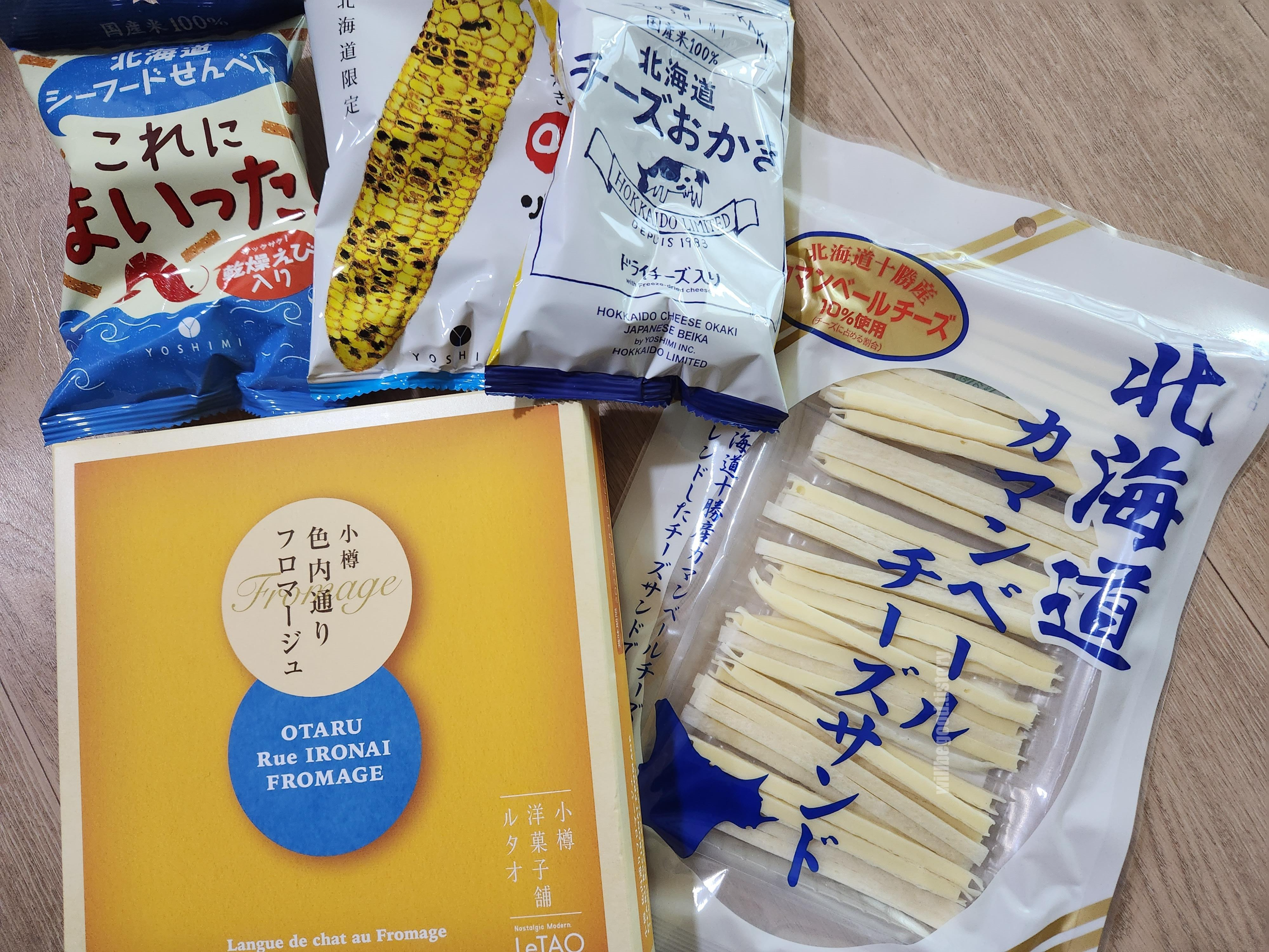 공항에서 잔돈 털어버릴 요량으로 구매한 여러 과자들
