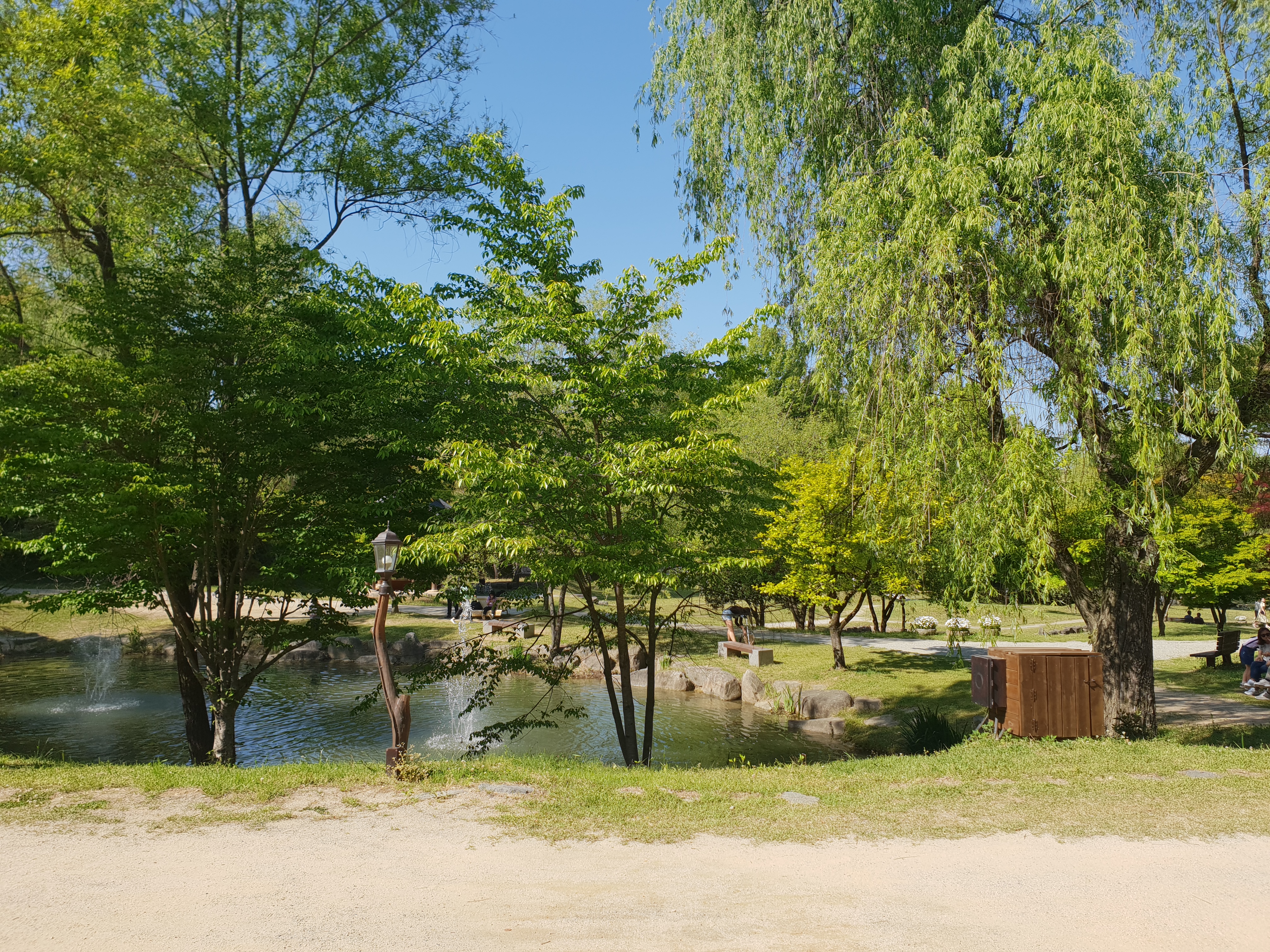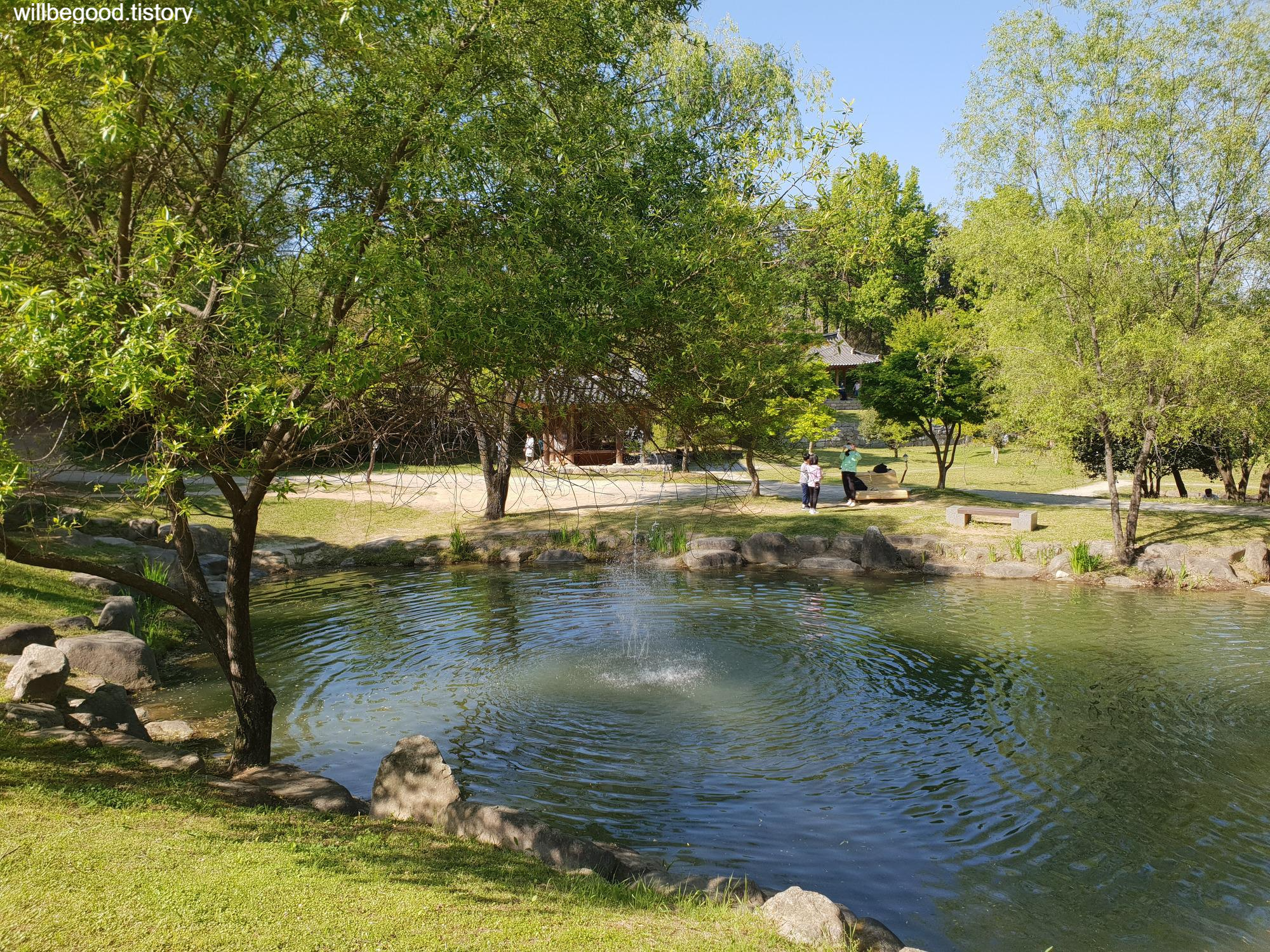 분수가 시원하게 솟는 연못도 있고